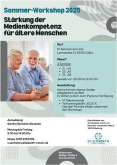Internetnutzung und Online-Sicherheit sowie Kommunikation über Messaging-Apps wie WhatsApp oder Signal – gerade ältere Menschen haben bei modernen Medien Vorbehalte. Und genau diese möchte der St. Elisabeth-Verein e.V. mit seiner Workshop-Reihe „Stärkung der Medienkompetenz für ältere Menschen“ abbauen.