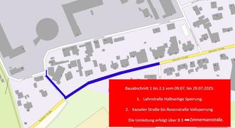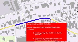 | 30.07.2025 bis 07.08.2025 | Kasseler Str./Rosenstr. bis Ecke Alte Dorfstr. | Vollsperrung |