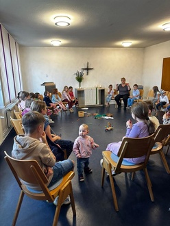Nach langer Vakanz gibt es seit knapp zwei Jahren wieder einen Kindergottesdienst in Reddehausen - und dieser wird hervorragend besucht. Wenn alle angemeldeten Kinder da sind, platzt der kleine Kirchsaal förmlich aus allen Nähten, darüber freuen sich beiden Leitungen Yvonne Schlegel und Sabine Otto sehr. Die Arbeit mit den Kindern bereichert nicht nur die beiden, sondern auch das Dorfleben. Um die Arbeit darzustellen und den Eltern zu zeigen, wurde im Sommer zum zweiten Mal ein großes Kindergottesdienstfest gefeiert. Die Resonanz war überwältigend. Der Nachmittag begann mit einem von Pfarrerin Bartsch gestalteten Familiengottesdienst, an dem die Kindergottesdienstkinder aktiv mitwirkten und beispielsweise Fürbitten sprachen oder auch die Lieder aussuchten. Die 80 zur Verfügung stehenden Stühle waren schnell besetzt und wurden durch Stehplätze ergänzt. Gut 120 Personen feierten an dem Nachmittag gemeinsam.
