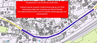 | 08.08.2025 bis 19.08.2025 | Kasseler Str./Alte Dorfstr. bis Ecke Fliederweg | Vollsperrung |