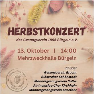 Der Bürgelner Gesangverein lädt alle Bürgerinnen und Bürger aus Bürgeln und Umgebung herzlich ein, an seinem Liedernachmittag – unserem „Herbstfestival der Chöre“ - am Sonntag, den 13. Oktober 2024 in der Mehrzweckhalle Bürgeln teilzunehmen.