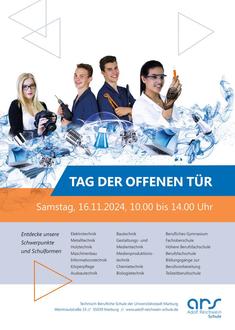Am Tag der offenen Tür werden die Schwerpunkte Elektrotechnik, Metalltechnik, KFZ-Technik, Installationstechnik, Holztechnik, Maschinenbau, Bautechnik, Ausbautechnik, Informationstechnik, Biologietechnik, Chemietechnik, Körperpflege, Gestaltungs- und Medientechnik und ganz neu Medienproduktionstechnik in den Schulformen Berufliches Gymnasium (BG), Fachoberschule (FOS), Höhere Berufsfachschule (HBFS), Berufsfachschule (BFS), Bildungsgänge zur Berufsvorbereitung (BzB) und Teilzeitberufsschule (BS) anschaulich dargestellt.
