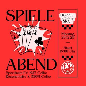 Wir treffen uns am Montag, 29.12.2025, um 19:00 Uhr im Vereinsheim des FV Cölbe, um gemeinsam Spaß zu haben.