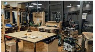 Es schließt sich eine Besichtigung der neben dem Café liegenden Werkstatt „hier & holzig“ an. Hier arbeiten Pädagogen, Designer und Schreiner zusammen mit behinderten und eingeschränkten Menschen in einer umfassend ausgestatteten Holzwerkstatt. Das Ziel ist es, eine Bürgerwerkstatt zu werden, in der die Bürgerschaft handwerkliche Beratung und Hilfestellung bei der Umsetzung von Holzprojekten erhält. Die Finanzierung der Werkstatt über Fördermittel gestaltet sich schwierig, man ist auf Auftragsarbeiten angewiesen.