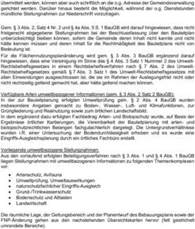 Gem. § 3 Abs. 2, Satz 4 Nr. 2 und § 4a Abs. 5 S. 1 BauGB wird darauf hingewiesen, dass nicht