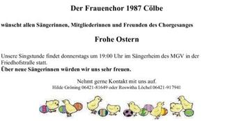wünscht allen Sängerinnen, Mitgliederinnen und Freunden des Chorgesanges