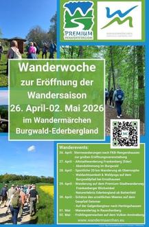 Erster Höhepunkt der Saisoneröffnung ist das ganztägige Eröffnungsevent mit Sternwanderungen nach Frankenberg(Eder)-Rengershausen. Wanderbegeisterte aus verschiedenen Richtungen - aus dem Ederbergland, Sauerland und angrenzenden Regionen - machen sich gemeinsam auf den Weg ins Walddorf Rengershausen. Dort erwartet die Gäste von 12 bis 18 Uhr ein buntes Fest mit regionalen Spezialitäten, Musik, Mitmachangeboten für Kinder, kleinen Wanderungen durchs Dorf und geselligem Beisammensein.