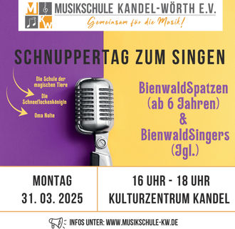 2. Einladung zum Schnuppertag-Singen bei den BienwaldSpatzen und BienwaldSingers am Montag, den 31.03.2025 ab 16 Uhr!