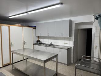 Die alte Küche wurde komplett entsorgt, und der Boden professionell durch die Firma Trockeneis Siggi gereinigt. Für frische Farbe sorgte Jürgen Schneider, der beide Räume neu strich. In der Küche wurde außerdem ein neuer Edelstahl-Anrichtetisch angeschafft, der durch die örtlichen Vereine gemeinschaftlich finanziert wurde.