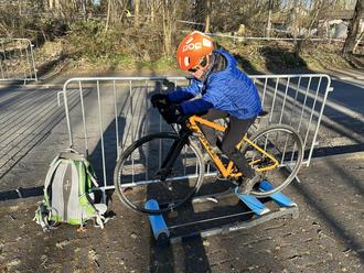 Am nächsten Tag war Laurin bereits frühmorgens wieder zum Einfahren auf der Strecke unterwegs, bei knackigen -1Grad. Im Anschluss ging es noch zum Warmfahren auf die Rolle.