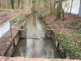 Wehr im Mühlbach, Blickrichtung flussabwärts Richtung Otterbach