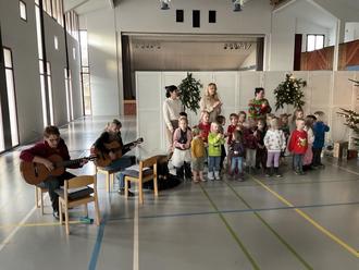 Während der Adventszeit 2025 durften die Kinder des Abenteuerlandes wieder bei drei Weihnachtsfeiern der Senioren einige Lieder zum Besten geben. Hochmotiviert sangen die Kinder einmal bei der evangelischen Kirchengemeinde im Pfarrhaus, außerdem beim Seniorencafé unserer Nachbarn, der Seniorentagesstätte, und bei der Seniorenweihnachtsfeier der Ortsgemeinde Minfeld (Foto). Die beiden letzten Termine fanden jeweils in der Mundohalle statt. Für alle fleißigen SängerInnen gab es ein kleines Dankeschön der jeweiligen Veranstalter. Die Seniorentagsstätte beschenkte weiterhin jede unserer KiTa-Gruppen mit einem Buch, welches sich die Gruppen im Rahmen unserer Buchausstellung aussuchen durften. Herzlichen Dank. Wir freuen uns darauf, euch auch im nächsten Jahr zu besingen.