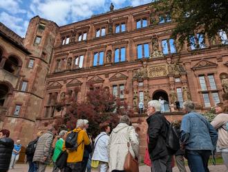 Nach einer Stadtführung, die viel Wissenswertes und Beeindruckendes zur Geschichte der ehemaligen kurpfälzischen Residenzstadt zu berichten hatte, genossen die Mitgereisten nicht nur den Flair der mit rund 1,5 Kilometern längsten Fußgängerzone Europas, sondern auch das ein oder andere kulinarische Angebot. Bei wunderbarem Wetter erklomm die Gruppe dann mit der Bergbahn den Königstuhl, um sich bei einer Schlossführung in längst vergangene Zeiten entführen zu lassen. Zurück in der Altstadt verhalf der Abschluss im Wirtshaus am Uniplatz mit seinen illustren Gästen dazu, sich (wieder) selbst wie zu Studienzeiten zu fühlen.