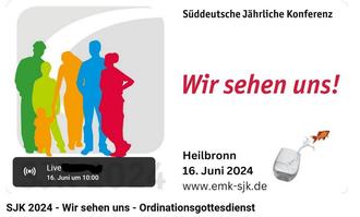 | 10.30 Uhr | Süddeutsche jährliche Konferenz mit Ordinations-Gottesdienst mit dem Bischof Harald Rückert in Heilbronn, Redblue-Center, Wannenäckerstr. 50 oder per Livestream |