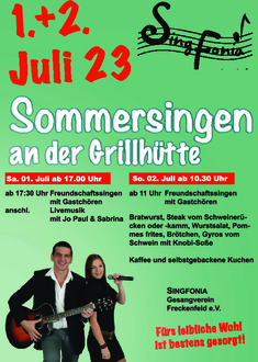 Am 1.&2. Juli findet an der Grillhütte wieder unser alljährliches Sommersingen statt, zu dem wir die Bevölkerung herzlich einladen möchten.