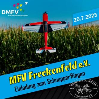 Es findet am Sonntag, den 20.07.2025 ab 12:00 Uhr auf unserem Fluggelände in Freckenfeld statt.