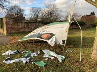 Vandalismus an einem Großflächenwahlplakat