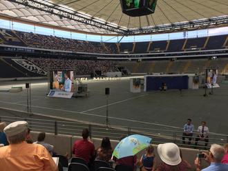 Frankfurt, 11.08.2023 – Zum ersten Mal nach drei Jahren pandemiebedingter Pause versammeln sich Jehovas Zeugen aus Kandel vom 11.bis 13. August wieder im Stadion Deutsche Bank Park für ihren dreitägigen Sommerkongress zum Thema „Übt Geduld“.