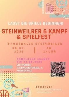 Wir freuen uns, euch alle zum Steinweilerer 6-Kampf und Kinderspielfest 2025 einzuladen! Wir hoffen auf viele Gruppenanmeldungen und heißen euch alle herzlich willkommen.