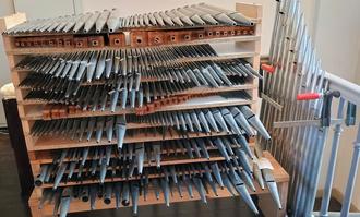 Nun wird die Walcker-Orgel in Erlenbach restauriert. Herr Markus Graser, seine Ehefrau und einige Mitarbeitende haben am Montag, den 9.9. mit ihrer Arbeit angefangen.