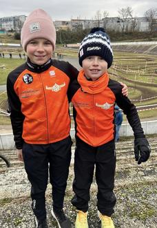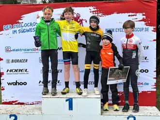 Nach einer ca. 15-minütigen Pause zum Umziehen ging es dann auf die Crossräder. Der Start des Rennens erfolgte anhand des Laufergebnisses jeweils mit ca. 5 Sekunden Abstand zum vorderen Fahrer bzw. zur vorderen Fahrerin. Bewältigt werden in der U13 mussten insgesamt vier Runden im Infield der Radrennbahn mit viel Crosspassagen, Rampen und matschigen Bodenbeschaffenheit. Laurin konnte sich zuerst mit der vier Fahrer starken Führungsgruppe vom Hauptfeld absetzen. Musste sich aber dann gegen Ende des Rennens den drei führenden und älteren Fahrern geschlagen geben. Karla erfuhr sich bei diesem Rennen unter fünf Fahrer/innen den 3. Platz.