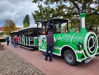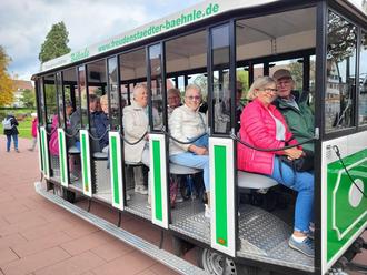 Nach einer kleinen Vesper mit geräucherter Bauernbratwurst und original Holzofenbrot ging es weiter nach Freudenstadt. Vom Marktplatz an der Stadtkirche startete unsere Fahrt mit dem Freudenstäter Bähnle, vorbei am Lauferbrunnen, durch die Stadt bis hoch auf den Kienberg. Dort machten wir Kaffeepause und fuhren anschließend mit dem Bähnle zurück nach Freudenstadt. Danach fuhren ging es mit dem Bus der Firma Friedmann zurück nach Minfeld. Vielen Dank dem Senioren-Team und den vielen Teilnehmern/innen für den schönen Tag!