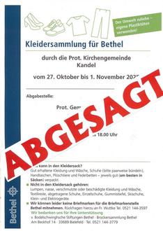 Die bereits angekündigte Kleidersammlung für Bethel vom 27.10.-01.11.2025 muss leider ausfallen.