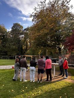 Nach dem sportlichen Teil stärkten sich alle mit leckerem Kuchen und genossen gemeinsam die letzten Sonnenstunden auf der Clubhausterrasse. Am Abend wurde es dann richtig gemütlich: Über dem offenen Feuer brutzelten Steaks und Würstchen auf dem Schwenkgrill, dazu gab es Pommes und jede Menge Zeit für gute Gespräche und gemeinsame Zeit.
