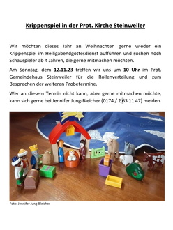 FR Sprechstunde im Ev. Gemeindehaus Steinweiler von 9.30-11.30 Uhr (außer bei Sonderterminen) – FR in dieser Zeit also kein Telefondienst. MO ist das Pfarramt nicht besetzt; Erreichbarkeit bei Sterbefällen auf dem Handy (Nummer auf dem AB)