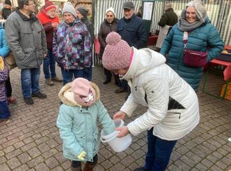Nachmittags wurde der Adventsmarkt von den Organisatoren des Adventsmarkts, Verbandsbürgermeister Mike Schönlaub und Ortsbürgermeister Michael Detzel offiziell eröffnet – wiederum um 15 Uhr - da sich am späteren Nachmittag das Adventsmarkt-Feeling ‚früher‘ einstellt. Die spontan für die Verlosung ‚beauftragte ‘ Glücksfee Hanna zog sehr souverän die Gewinner der Kulinarischen Verlosung, die an den einzelnen Ständen in Speisen, Getränke und Adventsartikel eingetauscht werden konnten. Der Fußballsportverein bot seine bewährte Gulaschsuppe und Bratwurst an. Die Landfrauen hatten eine Kürbissuppe, Zimtwaffeln und gebrannte Mandeln im Angebot. Zudem gab es von der prot. und kath. KiTa sowie dem Förderverein der Grundschule weitere ‚kulinarische Angebote‘, wie Kuchen, Donuts, Waffeln, Gebäck, heiße und kalte Getränke. Glühwein, Punsch, Liköre und kaltes Bier wurden auch angeboten. Der Tennisclub bot wiederum deftige ‚Saumagenburger‘ an.