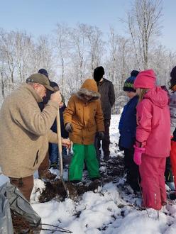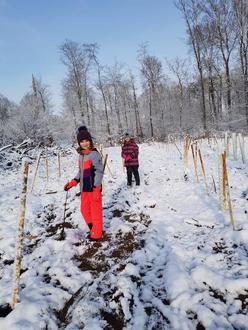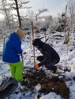 Am Samstag den 21.1.23 ging es für neun Kinder des Kindertreffs Vollmersweiler nach Schaidt in den Wald, um dort auf einem Waldstück Jungbäume zu pflanzen. Das dafür notwendige Equipment und Wissen brachte Rüdiger Sinn vom Forstamt Bienwald mit. Die Kinder durften unter Anleitung der Erwachsenen mit einem Spaten die Erdlöcher vorbereiten, wo im Anschluss die Jungpflanzen dann eingesetzt wurden. Dann wurde neben die Pflanze ein Holzstab in die Erde gesteckt, welcher als Befestigung diente, um den Schutz für die Pflanze fest zu machen. Nach getaner Arbeit gab es eine gegrillte Wurst im Brötchen und noch einen warmen Kinderpunch dazu. Nach der Stärkung durften die Kids noch Namensschilder anfertigen, um diese an ihren gepflanzten Jungpflanzen anzubringen. Neben der Pflanz Aktion gab es auch noch waldpädagogische Spiele. Gegen 13:30 Uhr traten wir wieder die Heimreise nach Vollmersweiler an. Die Kinder hatten sichtlich Spaß und genossen es körperlich aktiv zu sein.