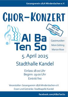 Wenn du Lust bekommen hast, den AlBa TenSo kennenzulernen und mit uns zu singen: Wir proben jeden Montag ab 19:00 Uhr im Bürgerhaus Minderslachen und freuen uns auf Dich.