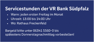 Die Sprechstunden des Ortsbürgermeisters finden an jedem 1. & 3. Montag eines Monats in der Zeit von 17.00 Uhr bis 18.00 Uhr im Rathaus statt oder nach Vereinbarung, entweder telefonisch unter 06340-366 oder per Mail unter marc.ulm@vg-kandel.de
