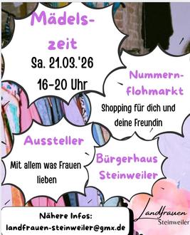 am Samstag, 21.03.2026 von 16:00 - 20:00 Uhr im Bürgerhaus Steinweiler