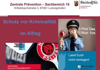Der Fachvortrag wird vom Polizeipräsidium Rheinpfalz durchgeführt.
