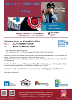 zu einem Fachvortrag zum Thema „Schutz vor Kriminalität im Alltag“ in den Kultursaal der Stadthalle Kandel ein.
