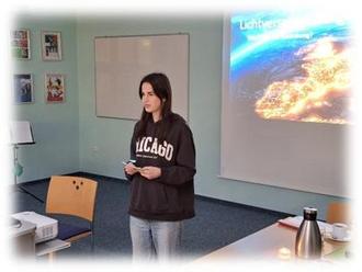 Lichtverschmutzung ist zu viel Licht für Mensch und Tier, sie entsteht durch die Aufhellung des Nachthimmels durch künstliche Lichtquellen. Das geschieht insbesondere in Großstädten wo durch die Beleuchtung die Nacht zum Tag gemacht wird. Ausführlich erläuterte Mara, welche negativen Folgen Lichtverschmutzung für Pflanzen, Tiere und Menschen hat. Ändern könne man das nur durch eine andere Beleuchtung, durch Lampen, die nicht wärmer als 60 Grad werden und die weniger Kelvin (Lichttemperatur) haben. Fulda ist die einzige Stadt Deutschlands, die ein Konzept gegen die Lichtverschmutzung entwickelt hat (Sternenpark Rhön).