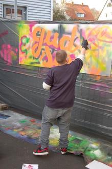 Jugendkonferenz Graffitiworkshop: Die Teilnehmenden konnten sich in verschiedenen Workshops kreativ und auch sportlich ausleben. (Bildautorin: Franziska Jäger | Kreisverwaltung Schwalm-Eder)