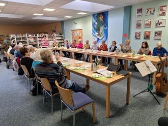 Knapp dreißig Teilnehmer*innen konnten wir wieder im Erzählcafe der Stadt Felsberg begrüßen. Es wurde ein abwechslungsreicher und schöner Nachmittag, denn “jeder hatte etwas zu sagen“. Bevor es losging, gab es aber erst einmal wieder Gesang, leckeren Kuchen und Kaffee, belegte Brote mit sogar selbstgebackenem Brot. Auch der Schulleiter, Herr Heidelbach, und die Sekretärin, Frau Knuth, holten sich eine kleine Stärkung. Wir danken dafür, dass wir immer wieder in die Schule kommen dürfen.