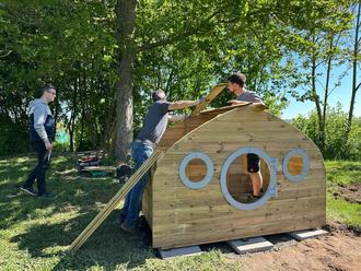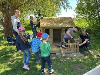 Das war eine großartige Aktion bei schönstem Wetter und guter Laune! Die Kinder der Familien waren auch dabei und haben die Häuschen gleich bespielt und für gut befunden.