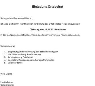 Sitzung des Ortsbeirates Melgershausen am 14.01.2025