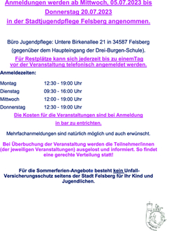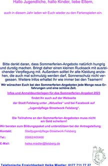 Detaillierte Informationen zu den Sommerferien-Angeboten befinden sich auf der Homepage der Stadt Felsberg.