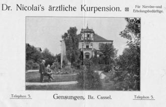 Ein ebenso wagemutiger aber leider erfolgloser Initiator war Dr. med. Herrmann Nicolai. Er erbaute 1903 das Haus Nr. 37 ¾ und gründete darin eine Kurpension für Nervöse und Erholungsbedürftige. Zu seiner Villa gehörte ein Kurpark mit Wandelhalle und Tennisplatz. Während des Ersten Weltkrieges diente das Haus als Erholungsheim für verwundete Soldaten. Die Wirtschaftskrise nach dem Krieg und die Inflation zwangen ihn zum Verkauf.