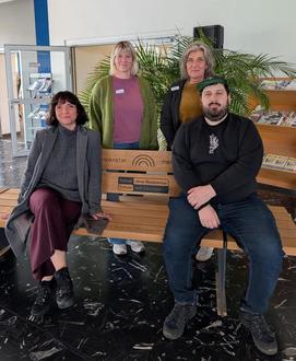 (v. li.) Elena Padva (Sara-Nussbaum-Zentrum), Lena Manchen (RFES), Steffi Hoffmann (BDP) und Joel Willing (Liberale jüdische Gemeinde Nordhessen) (Bildautorin: RFES)