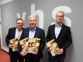 Foto: (v. li.) Franz Drescher (Leiter der vhs Schwalm-Eder), Landrat Winfried Becker und Mike Stämmler (Fachbereichsleiter Schulen, Erwachsenenbildung und Sport) (Bildautor: Stephan Bürger | Kreisverwaltung Schwalm-Eder)