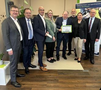 Bild: Schwalm-Eder-Kreis von links: Thomas Ross – Vorstand Kreissparkasse, Landrat Winfried Becker, Michael von Bredow – Vorstand Kreissparkasse, Michaela Adler – Koordinatorin Ambulanter Kinder- u. Jugendhospizdienst in Fritzlar, Michael Kreutzmann – Kreistagsvorsitzender, Heinz Rohde - Ambulanter Kinder- u. Jugendhospizdienst in Fritzlar, Brigitta Priester - – Koordinatorin Ambulanter Kinder- u. Jugendhospizdienst in Fritzlar, Jürgen Kaufmann – Erster Kreisbeigeordneter