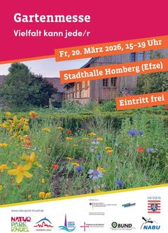 Bei der "Gartenmesse 2026 - Vielfalt kann jede/r" gibt es an Ständen, durch Impulsvorträge und Mitmachaktionen, Anregungen und Informationen für mehr Artenvielfalt im Haus- und Hofgarten. Vom Balkon bis zum großen Garten - Vielfalt kann jede/r. Eine Kooperationsveranstaltung von Naturpark Knüll, der Stadt Homberg (Efze), BUND, NABU, Ev. Forum Schwalm-Eder