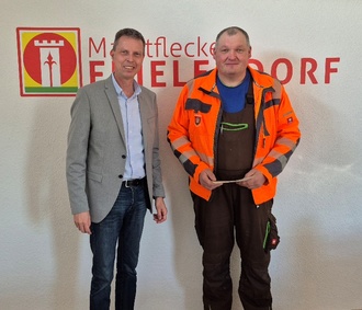 Bei einer Feierstunde gratulierte Bürgermeister Jens Nöll dem Beschäftigten im Namen der gesamten Belegschaft zum Dienstjubiläum. „Danke für Deine Treue, Dein Engagement und die gemeinsamen Erfolge – auf viele weitere Jahre der Zusammenarbeit. Es ist keine Selbstverständlichkeit, über solch eine lange Zeit einem Arbeitgeber die Treue zu halten“, würdigte Jens Nöll den Jubilar und überreichte ihm eine Urkunde.