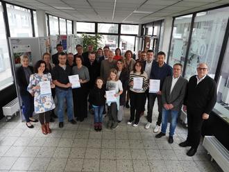 Pädagogisches Prämienmodell: Markus Karl Pollok (re.), ehrenamtlicher Dezernent für Energie und Klimaschutz, zeichnete Vertreterinnen und Vertreter teilnehmender Schulen in der Homberger Kreisverwaltung aus. (Bildautorin: Kreisverwaltung Schwalm-Eder)