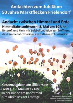 Mittwoch, 8. Mai: 10.00 Uhr: Andacht zum 50-jährigen Bestehen der Gemeinde Marktflecken Frielendorf am Rathaus mit Luftballonaktion